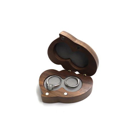 Gran oferta, joyero de madera de lujo, Nogal Negro personalizado para 2 anillos, diseño único con caja de anillo de madera de corazón