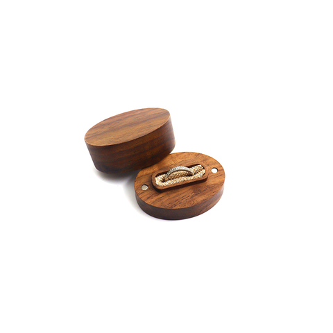 Caja de anillo de compromiso de regalo de Navidad con logotipo personalizado, entrega rápida, stock al por mayor, caja de anillo de madera de nogal de arpillera de lino ovalado, novedad de 2021